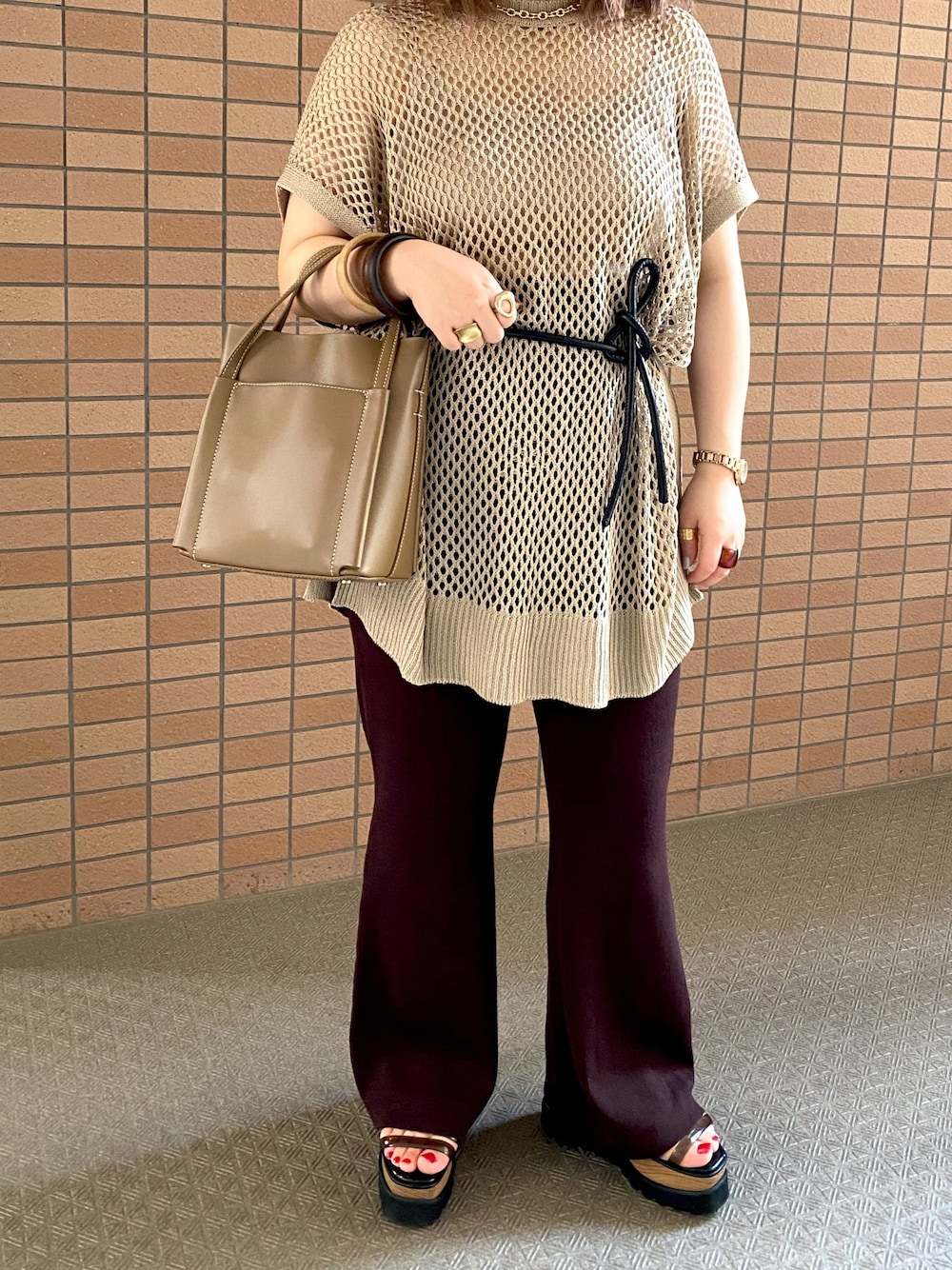 本日休日です🌹 最近購入したneunaのメッシュベストが届いたので早速🤎ブラウンとベージュのワントーン素敵🥺🥺!薄手だからインでもいけるかも?短いほうも欲しいな〜可愛い〜涼しい〜🤔パンツは着回し😄!