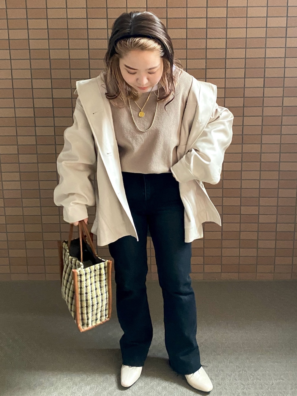 本日のお洋服🌱❤︎ kastaneのレザージャケットは去年買ったブラックがめちゃくちゃ重宝したので今年もアイボリー買いました🤍 mysticのカシュクールニットを今回はバックオープンになるように着て正面はシンプルに💡✌🏻 可愛いなあ〜〜〜