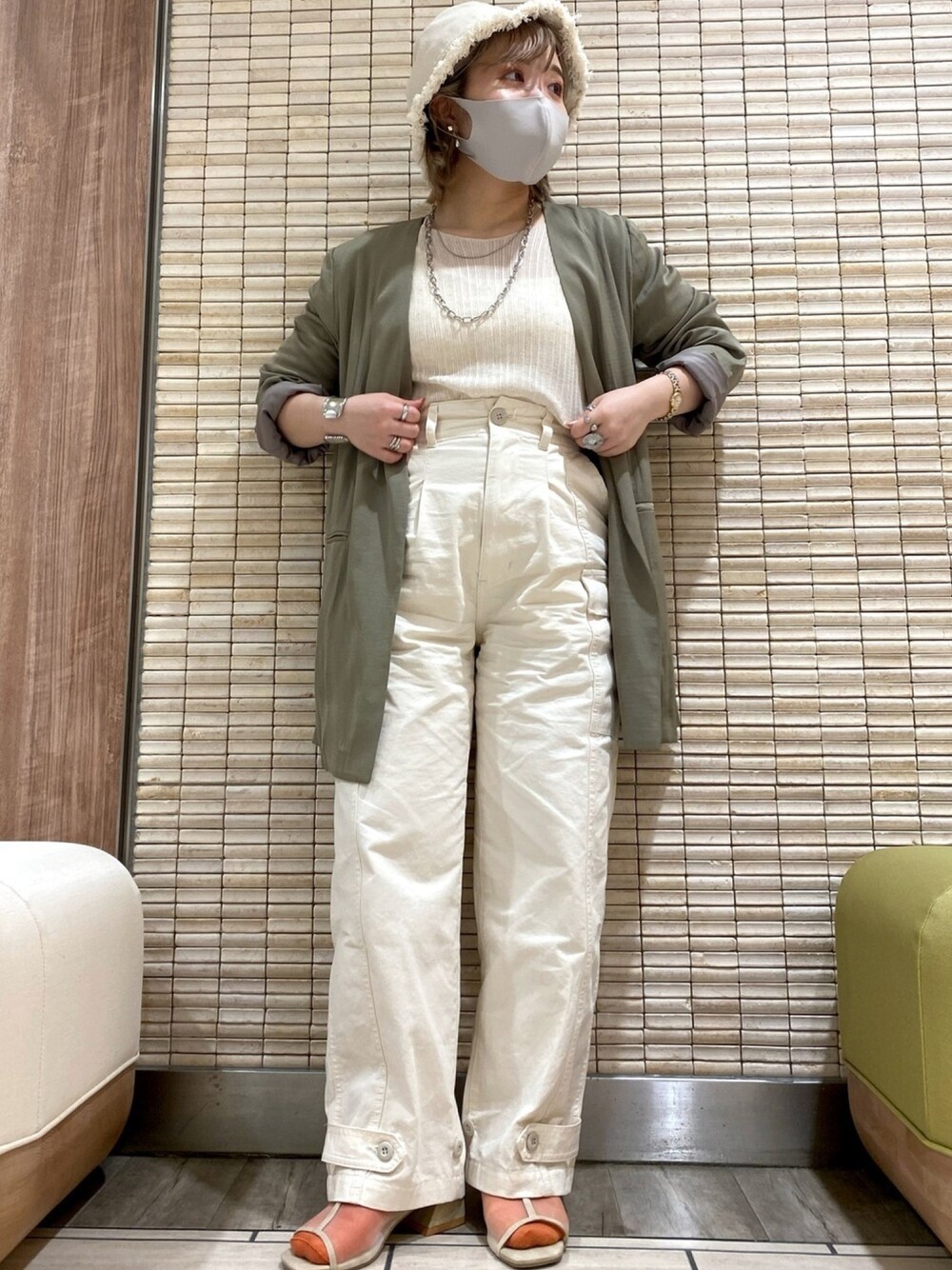 SAWAchanのノーカラージャケット「ヴィンテージサテンカラージャケット」を使ったコーディネート