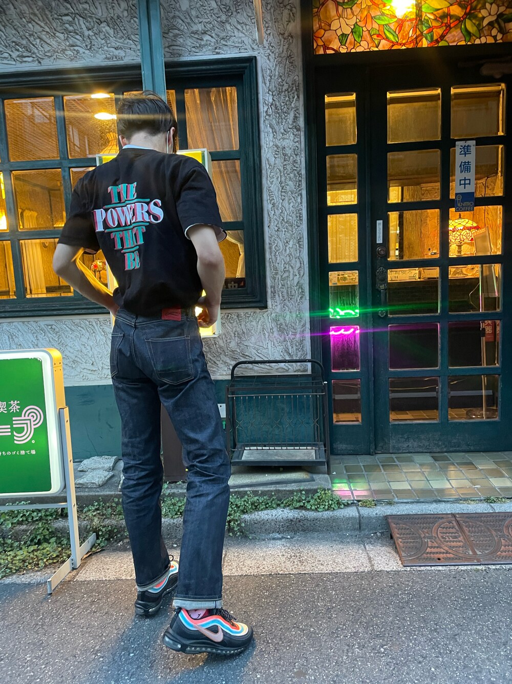 上野の夕方 おニューのデニムが調子◎ Tシャツもスニーカーも◎ もう夏が来ますね