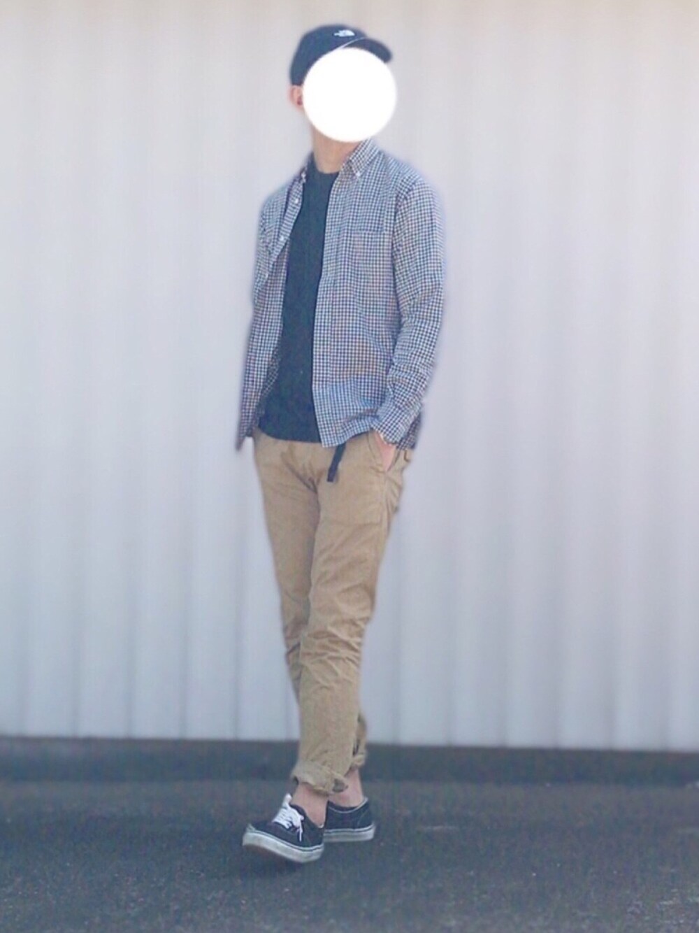 ギンガムチェックってカジュアルでもフォーマルでも使えるからいいですよね。 ロールアップは敢えて適当な感じで。