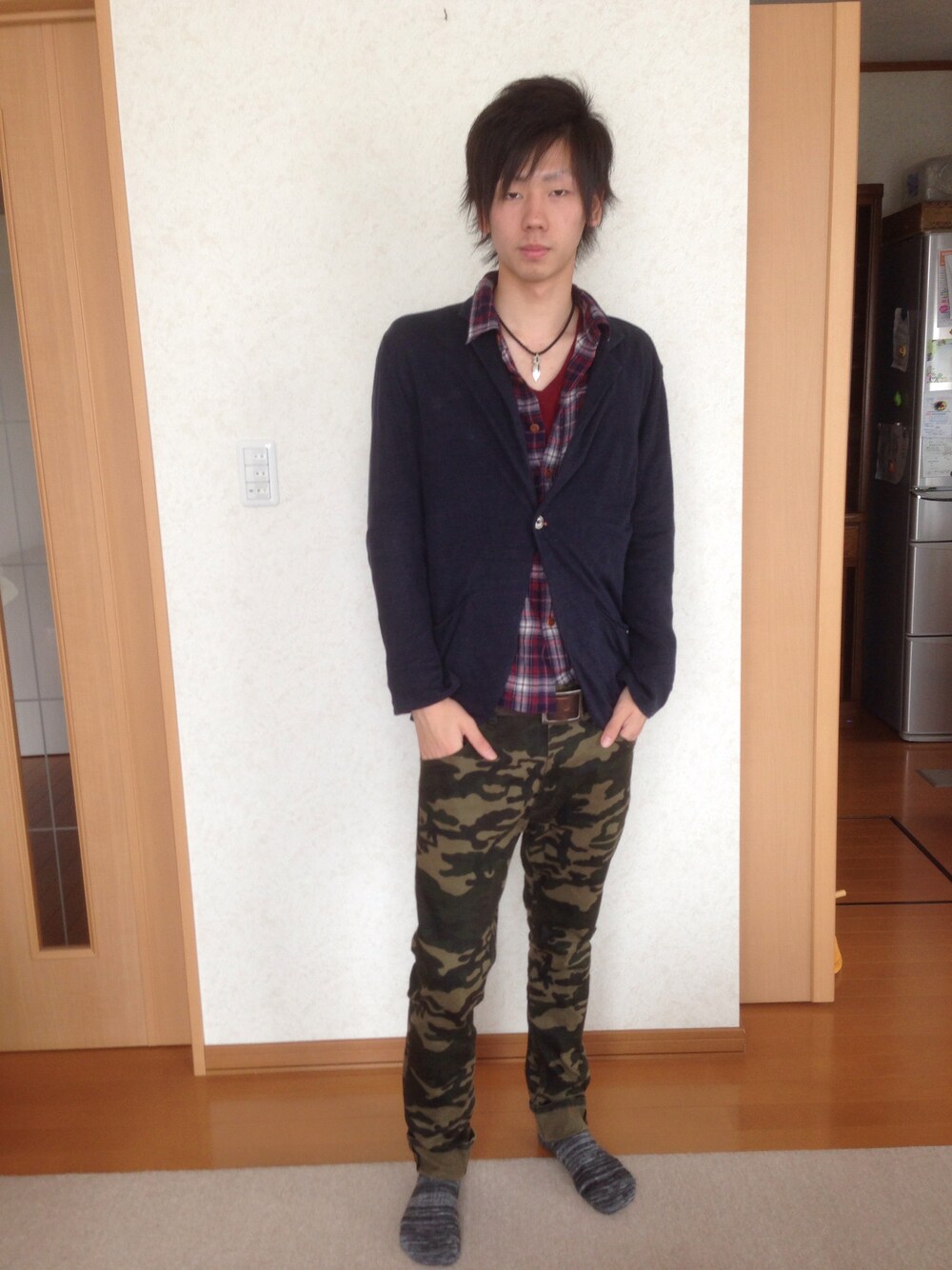 テーラード(UNION STATION) チェックシャツ(UNION STATION) カットソー(glory crew) パンツ(MIND BLOW) ネックレス(POLICE)