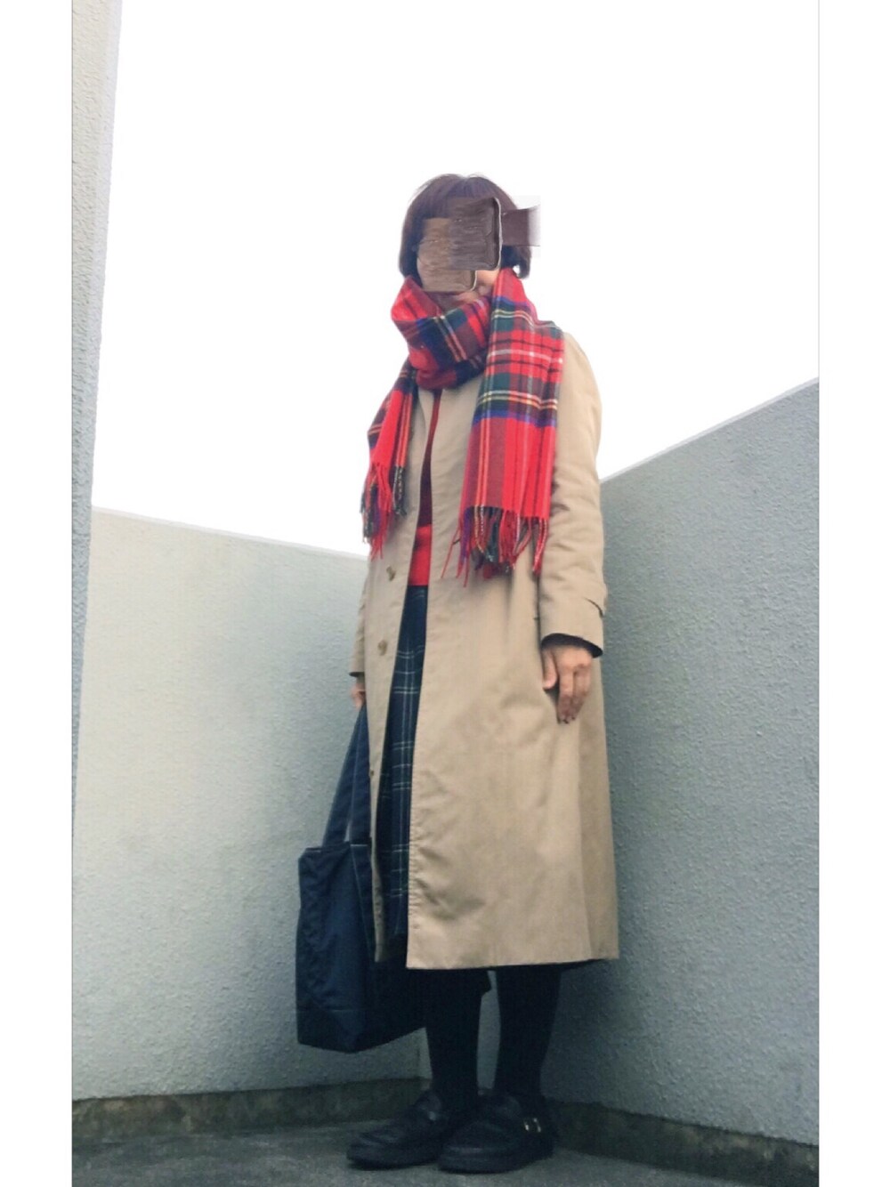 いい歳して、赤のストール new in 「new in」使って見たかっただけ😅 中も赤のタートル 気づけばチェックだらけ