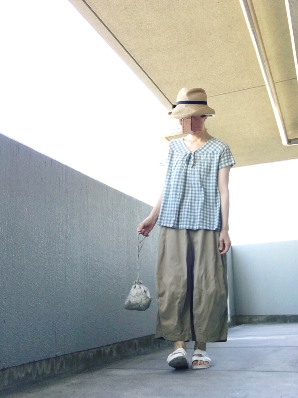 ラクチンで涼しいが最優先な日 インスタで購入した ミナペルホネン の生地を使った ハンドメイドの巾着 かわいい💕