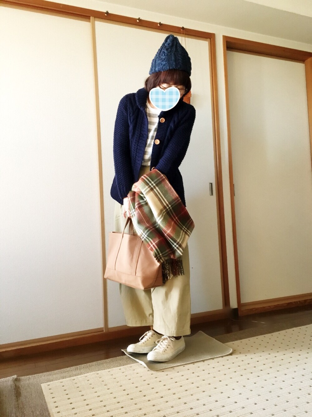 朝、晩寒くなりましたねえ。 でも、まだ暖房つけずに頑張ってます。 なかなかコーデUPできないのですが、 皆さんのコ素敵なーデはちゃんとチェックさせていただいてますよ〜😆 今日はさだきちさんとおソロ、nikoのパンツです。 何かまだしっくり来ず、納得のいかないコーデになってしまいました😅要研究ですね💦 トートバックは初めてminneで購入しました〜💕 手作りとは思えないクオリティ、ほっこりのミルクティーカラーで気に入りました❤️ 明日から12月。 早いですねえ。また、長期の研修が入るので忙しくなりそうです😣