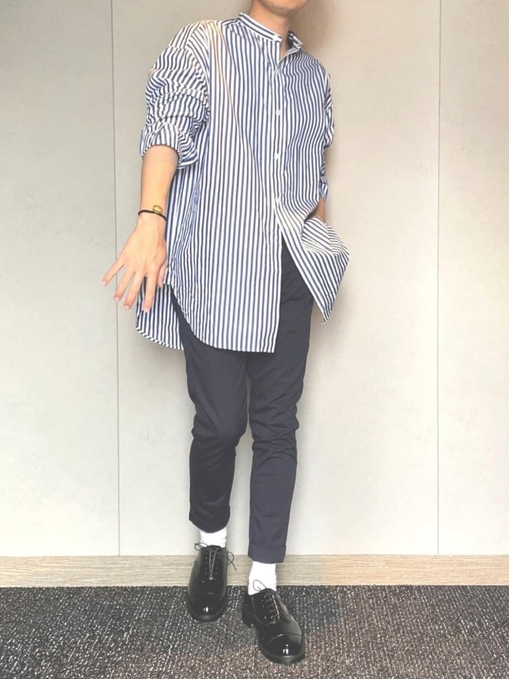 オーバーサイズのタックアップシャツ とパテントレザーの靴👞 Traditional Weatherwearを愛し過ぎてる😇