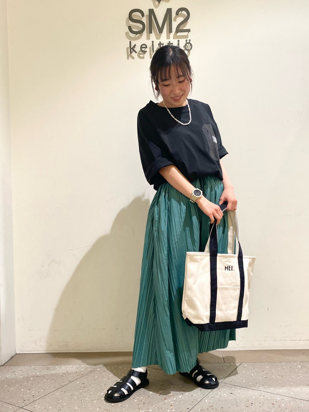 こんにちは!🥰 最近気温の低い日が続いてますので、気持ちだけでもあったかく初夏のコーディネートを組んでみました🌟 MEI✖︎SM2のアイテムはオシャレかつ機能性があるのでご旅行などにピッタリです! この緑のスカート、なんと後ろにポケットがあって丸めて小さくまとめることができます(o_o) 他にも店頭には撥水加工のポンチョやポーチ付きTシャツなど可愛いアイテム揃っておりますので、是非チェックしてみてください~💕✨ 〜〜〜〜〜〜〜〜 店内春物MAX50%OFF🌟 新作アイテムも続々入荷しております🥰 ソラマチ店スタッフ一同お待ちしております^o^♪