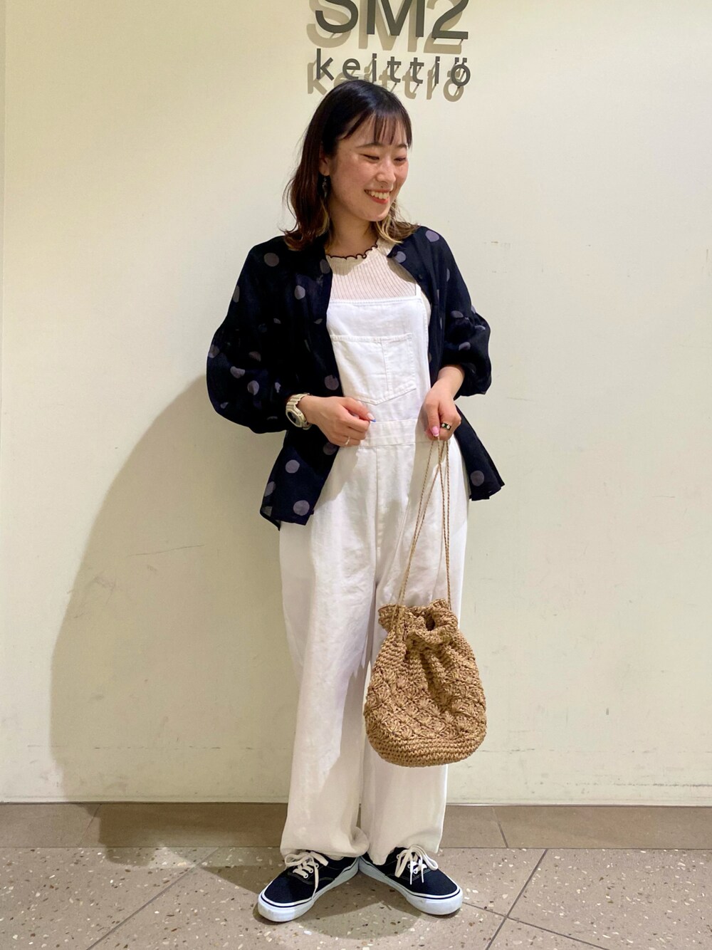 初夏のナチュラルコーデ🐈💕 薄くて軽やか白サロペットをメインに組んでみました🪡 リサイクルリネンのブラウスもとっても涼しげで、これからの季節にピッタリです🫶 〜〜〜〜〜 ただ今店頭では2buy20%OFFのゴールデンウイークフェア開催中です🍒 ぜひお立ち寄りください🌼🌼