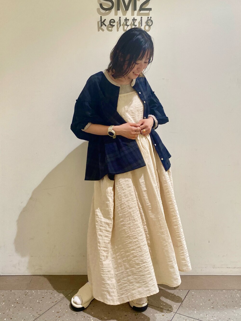 本日6月24日から東京ソラマチでは夏空バーゲンがスタートいたします🌤✨ サマンサモスモスでは新作アイテムがとってもお得にゲットできるチャンス🫣‼️ ぜひ皆様のご来店お待ちしております✨ ~~~~~~ ぽこぽこがかわいいキャミソールワンピースに大人気の配色ブラウスを羽織として使ってみました♩ 前開きにしてインナーが少し見えることでヘルシーさも出て好きな合わせ方です(*^o^*)🍒