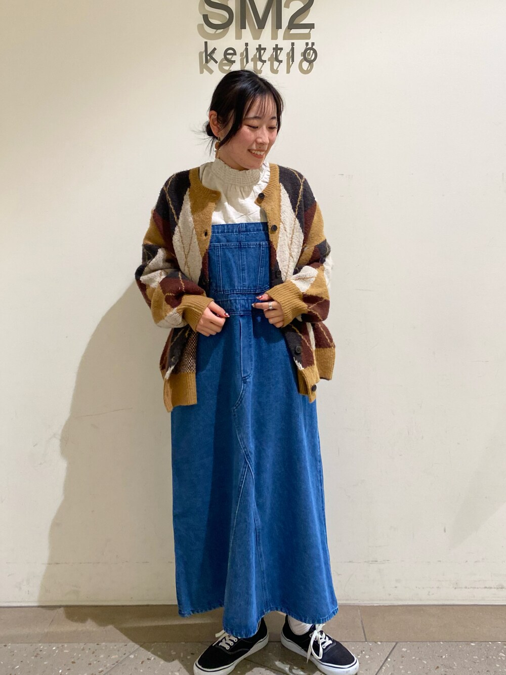 こんにちは☀️ かわいいアーガイルのカーディガンでコーディネートを組んでみました❤︎ 触り心地もちもちでたっぷりした腕のシルエットが可愛いです🥺💕 ジャンパースカートも中のブラウスも着回し力抜群で春先まで使えますので、ぜひチェックしてみてください💁♀️✨ ソラマチ店でもお待ちしております🎪
