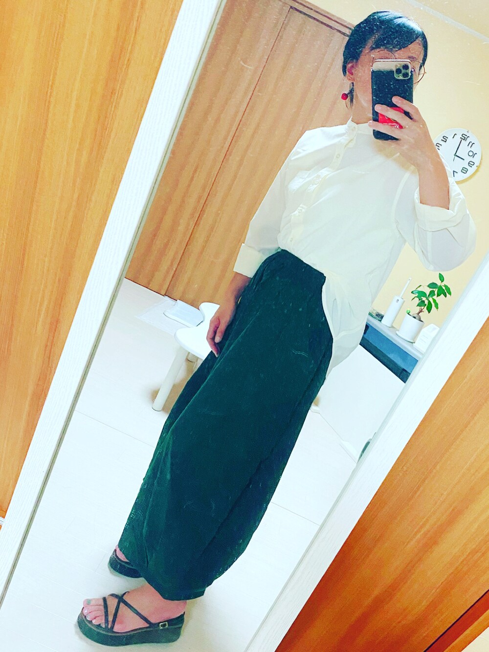 utakomamajojoのシャツ/ブラウス「ポリラミー バンドカラーシャツ」を使ったコーディネート