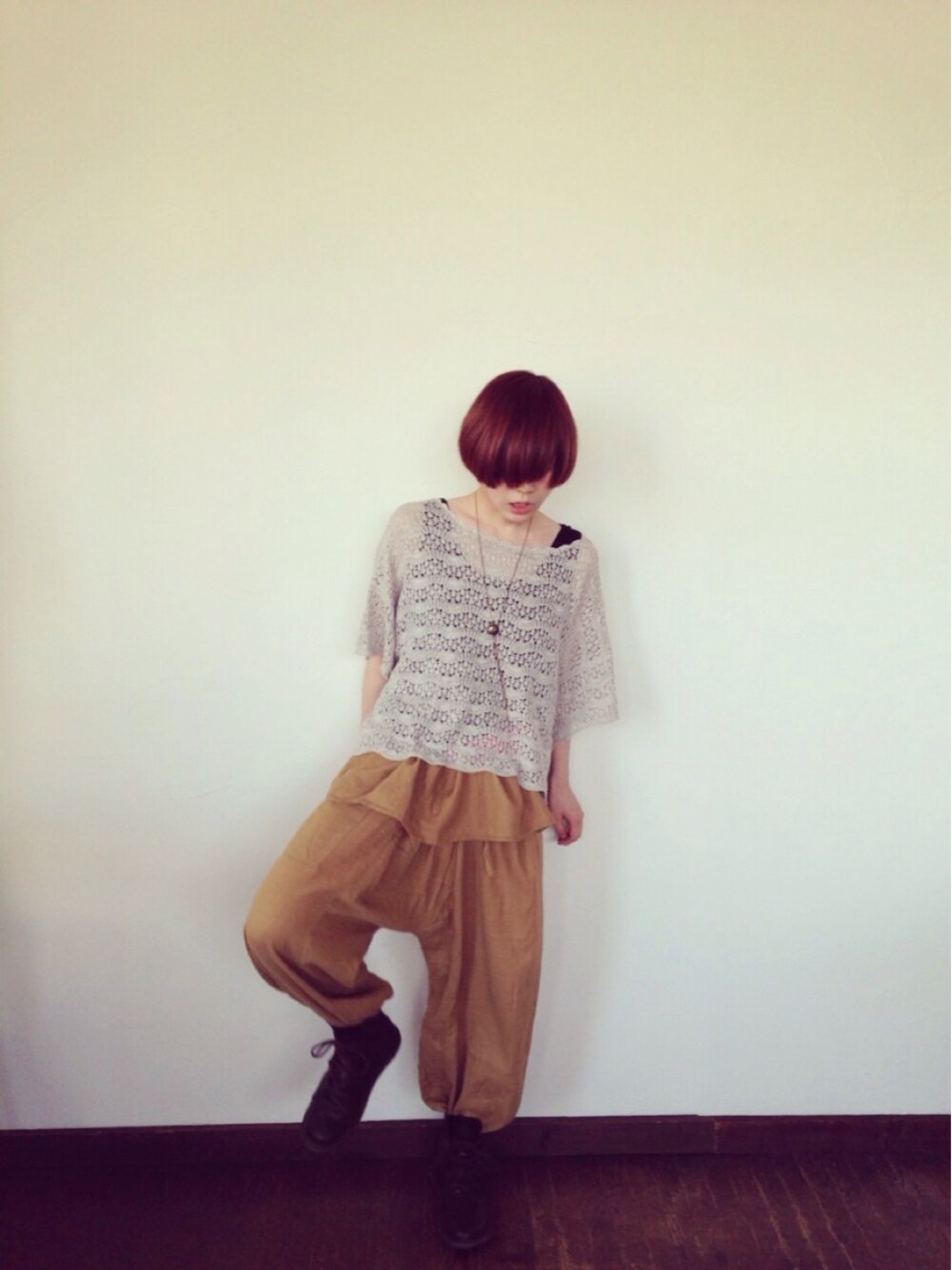 しりとり着回し。 昨日とトップスが一緒。 夏でもタイパンツでブーツイン。