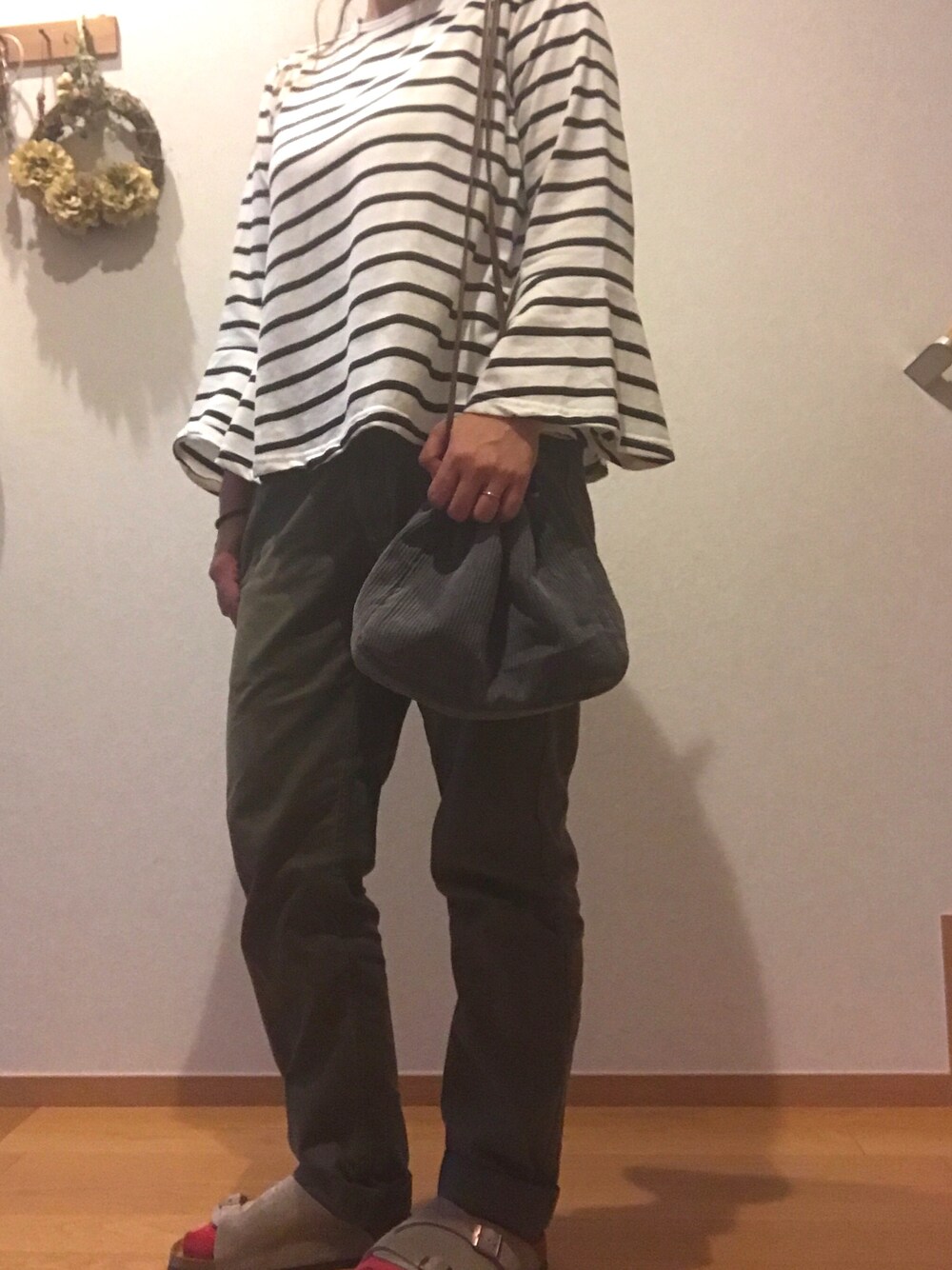 momonのTシャツ/カットソー「ボーダー&無地袖フレアカットソー」を使ったコーディネート