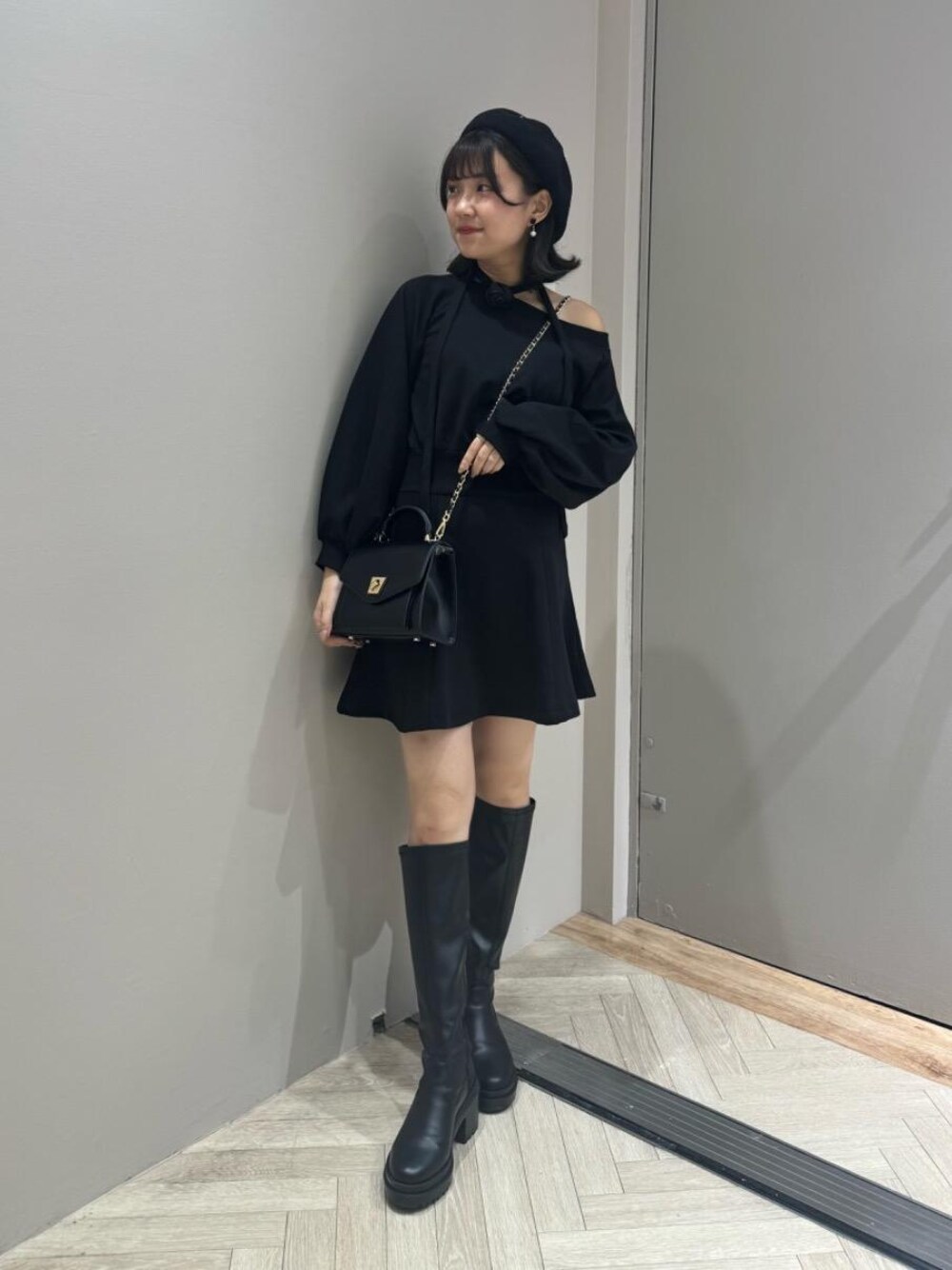 毎年定番のスウェットワンピ👗今年はチョーカーとローズモチーフのブローチ付きでトレンド感満載🥀❤︎チョーカーにブローチをつけたり、ワンピに直接ブローチを付けたりとアレンジ方法も様々◎ スカートのシルエットはフレアタイプで、首元はワンショルにもできるようなざっくりな襟元になってます🐈⬛