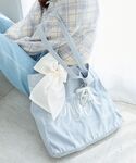 推し活におすすめブルーコーデ🩵🫧カーディガンのボタンは毎シーズン定番のフラワーボタン❁⃘*.゚揺れ感が可愛いスカートと合わせて写真映えするコーデに🫶🏻 ライブなど大荷物の時にも便利なトートバッグは新色でブルーが入荷してます💎青推しさん必見のアイテムです🧞♂️