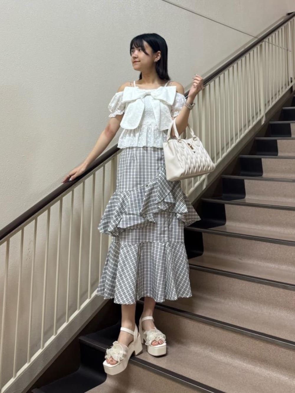 ゆうたん(MAJESTIC LEGON)のショルダーバッグ「クラシカルスクエアハンドバッグ」を使ったコーディネート