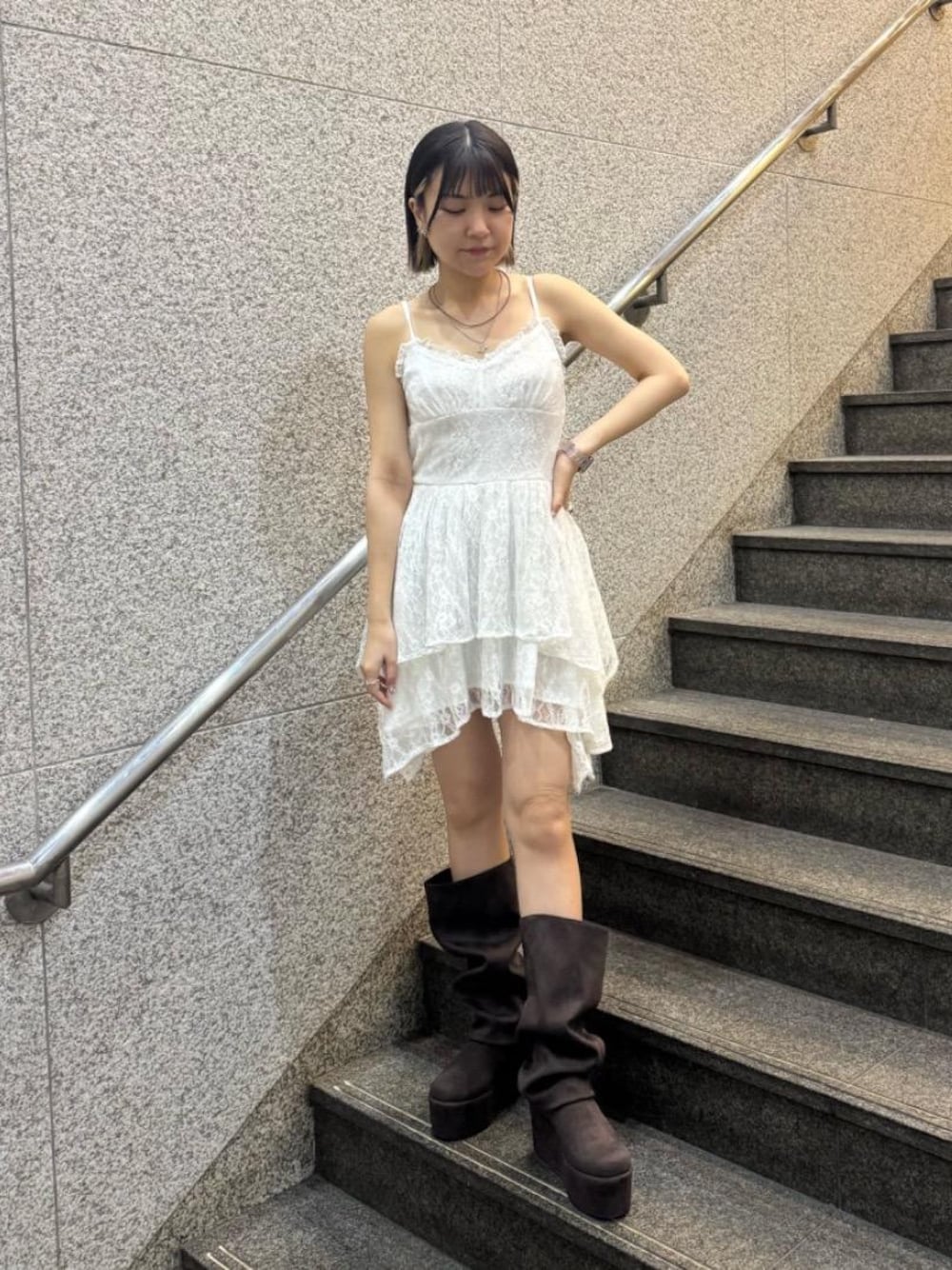 1枚でトレンド感がupするキャミワンピ🪽肩紐部分で長さ調整もできるので短めにしてパンツ合わせにするとチュニックとしても着られます◎ブーツはカバーが付きなので2wayで使える優れものです👢