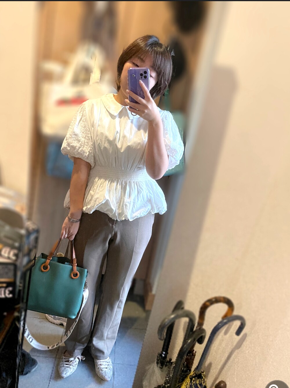 通勤服〜 色だけ秋意識! ブラウスは半袖だけどしっかり目の生地で真夏は暑くて着れなかったからようやく着れてうれしい☺︎