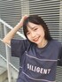 3DロゴししゅうTシャツ チャコールグレー×ピンク 好き〜💓 大きめサイズでも可愛いよね🤗