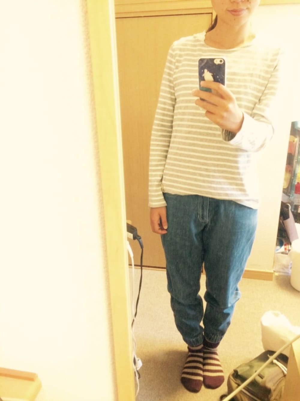 いおりのTシャツ/カットソー「ライトグレーボーダーT」を使ったコーディネート