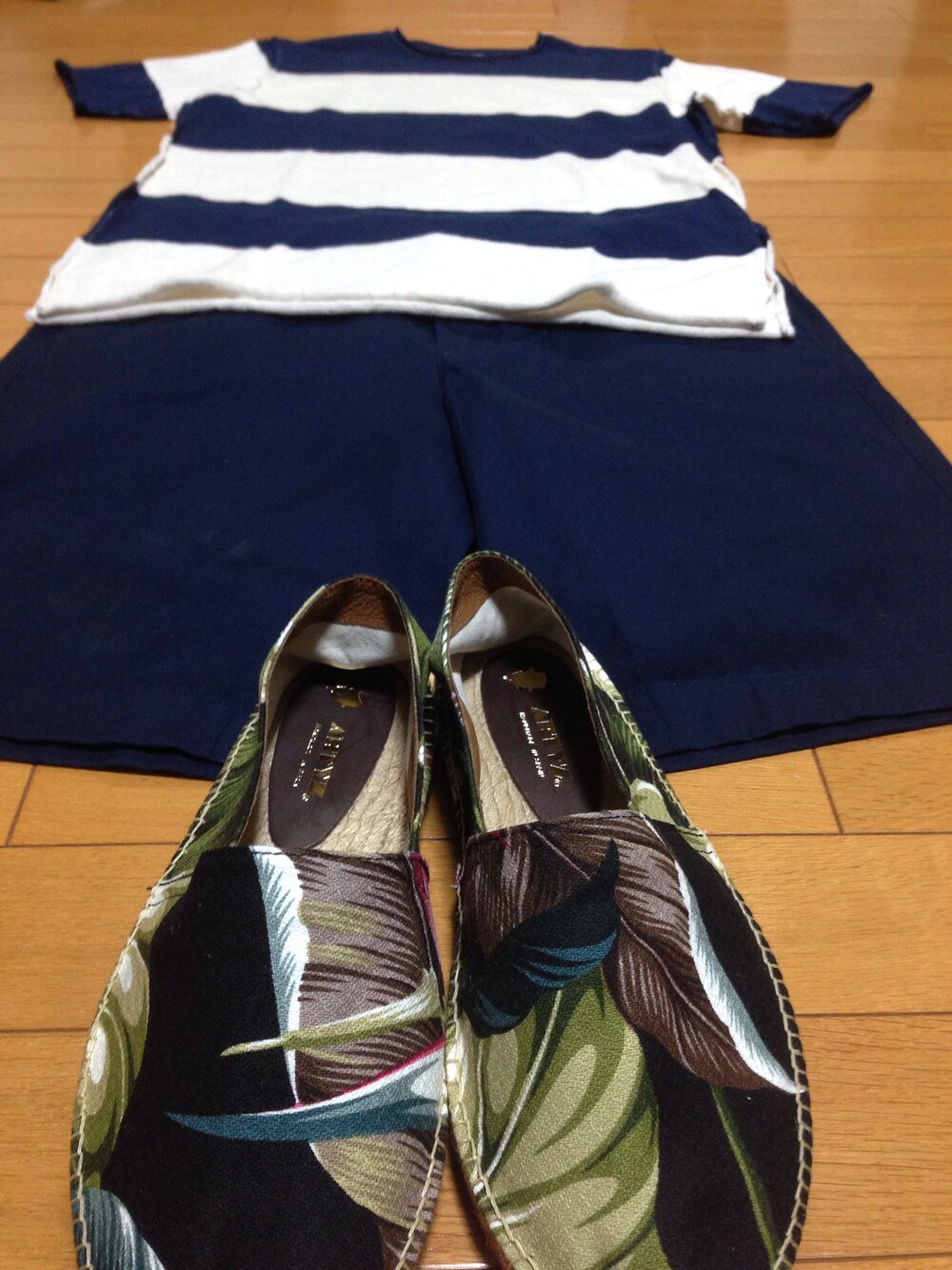 NAVY×NAVY ショーツは膝上ぐらいの丈だけど一回ロールアップして履きたいと思います。 足元はエスパです。 季節感と清涼感UP( ̄▽ ̄) 最近服買えてませんがよろしくお願いします。