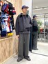 ブラック、チャコール、グレーと落ち着いたモノトーンでまとめた大人キレイめカジュアルコーデ。 ボックスシルエットなアウター選びとワイドなスラックスで、アイテムはキレイめながらどことなくカジュアルな見た目に。
