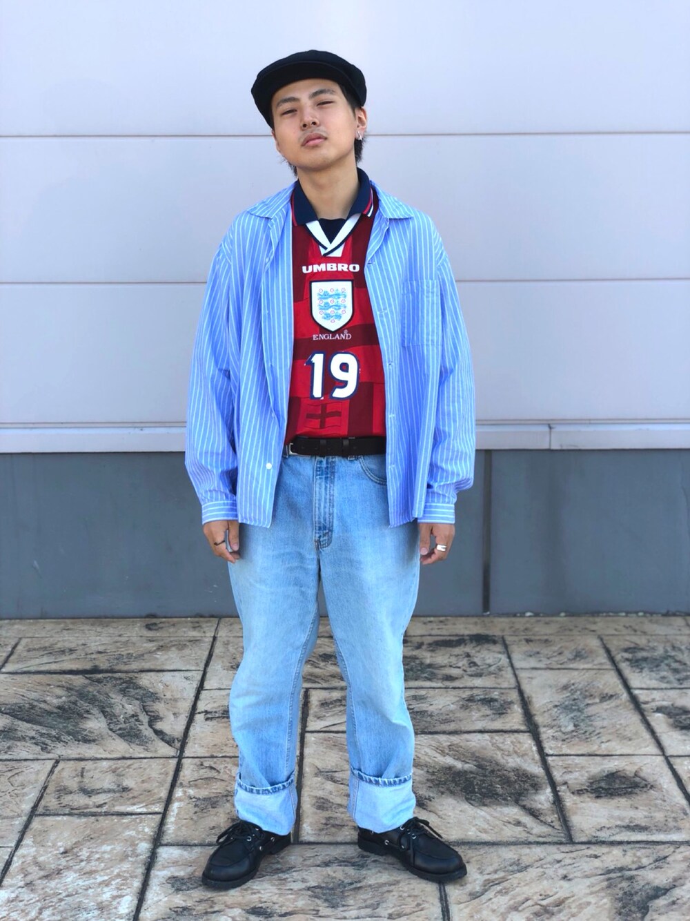 いいね、お気に入りありがとうございます。 モードっぽい顔してみました。 ブルー系に差し色で赤入れてみました。 青と赤は案外あうと思う。 スポーツミックスですな。