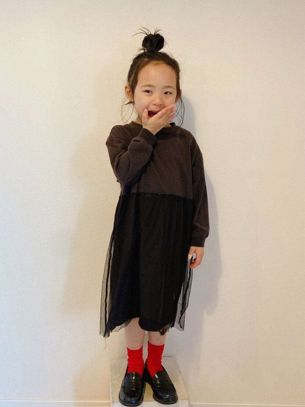 🏷オールブラック 足元差し色入れてますけどいいですか🔴 基本前髪短い族なのであげるほどないけど、デコ出しも私は好き♡ 小さい子のおだんごが大好き🍡 このワンピース本当に長いことお世話になったな そろそろ長めの黒ワンピを新調しようと思います