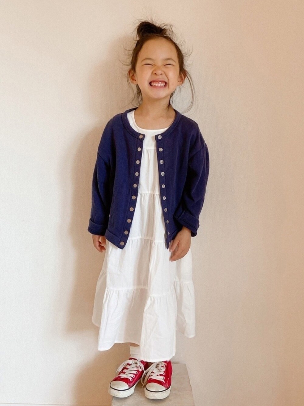 #カーディガン このアニエスカーディガン… いつもの古着屋で 330円🤣 生地厚めやからまた来年かな♡ 6ansでむすめにはまだちょっとおっきかった アニエスカーデ欲しかったから嬉し♡ ビッグスマイルの後、食べてたグミが口から出たよ🤪