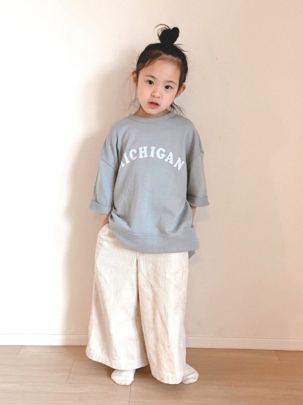 #休日スタイル @babychu2014様より 以前に着用させていただいたTシャツ 母娘で着用させていただきました また親子コーデも載せます〜 着心地が良くて可愛いブルーグレー ワイドパンツ合わせも可愛い♡ おうちじかんにもぴったり♡ この日はおうちコーデで撮りました