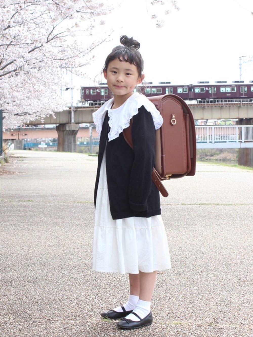 入学前にランドセル写真🎒 母が娘を押し切ったキャメル← 本人も気に入ってくれたようでホッ。 桜と一緒に撮れました📸 入学コーデは手持ちの服でいけました🙆♀️✨ むすめは1年6組でした☺︎ ともだち100人できるかな♫
