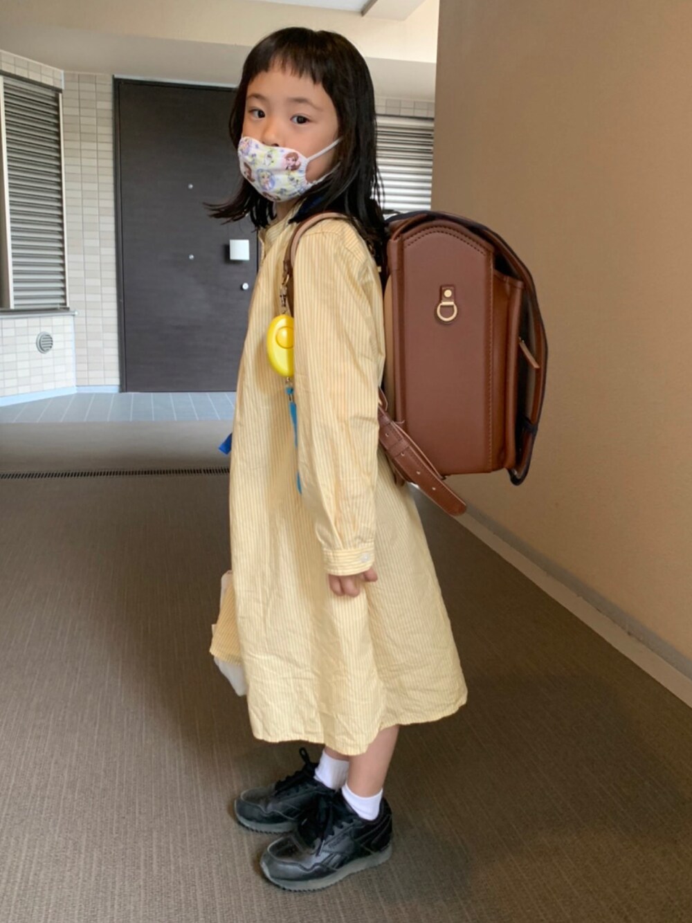 めちゃめちゃ学校の通学コーデです 知らない子ばっかりで頑張ってるむすめ なかなかお友達が100人できると思ってたらできないと言ってました 少しずつ話しかけてみたらいいよーと話してます 1週間おつかれさま🌸 ユニクロのシャツワンピ狙ってたのが安くなってたので…♡