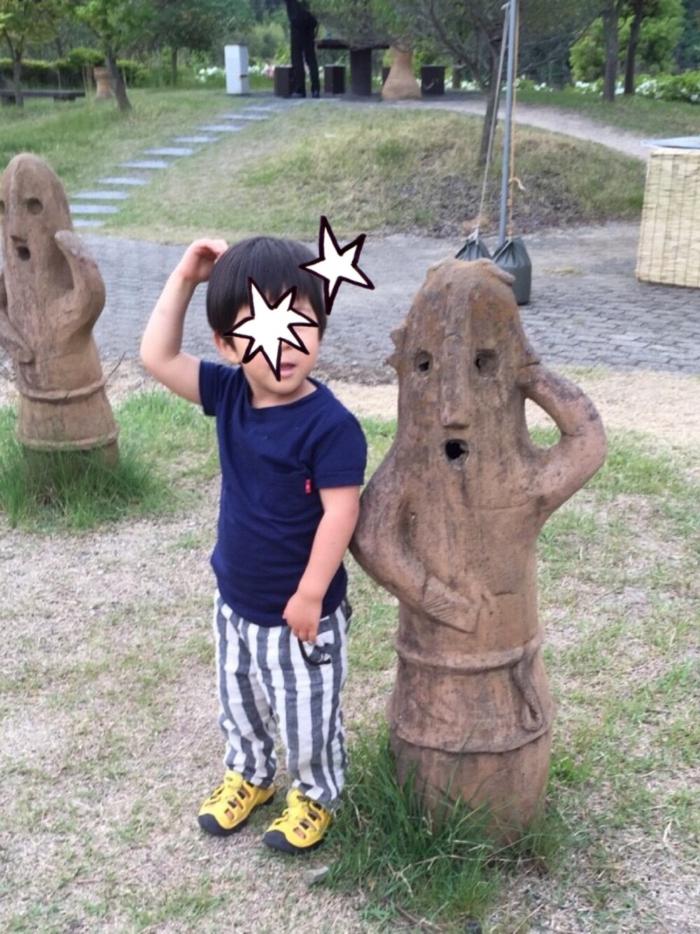 ハニワと同じ身長♪ 本人の選んだサンダルが派手〜