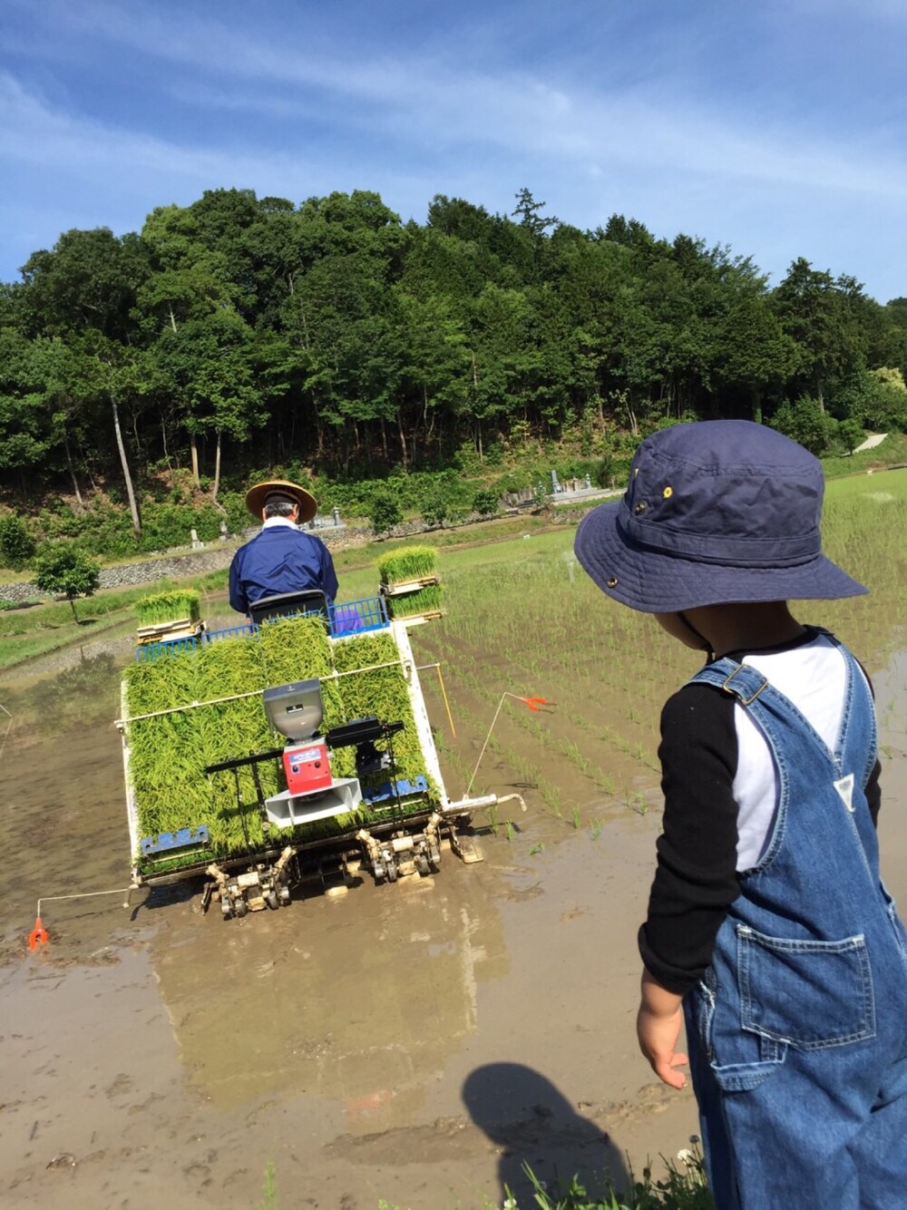 ブルー系のサロペット/オーバーオール、ブルー系のハットを着用したキッズの夏コーディネートの1枚目の写真
