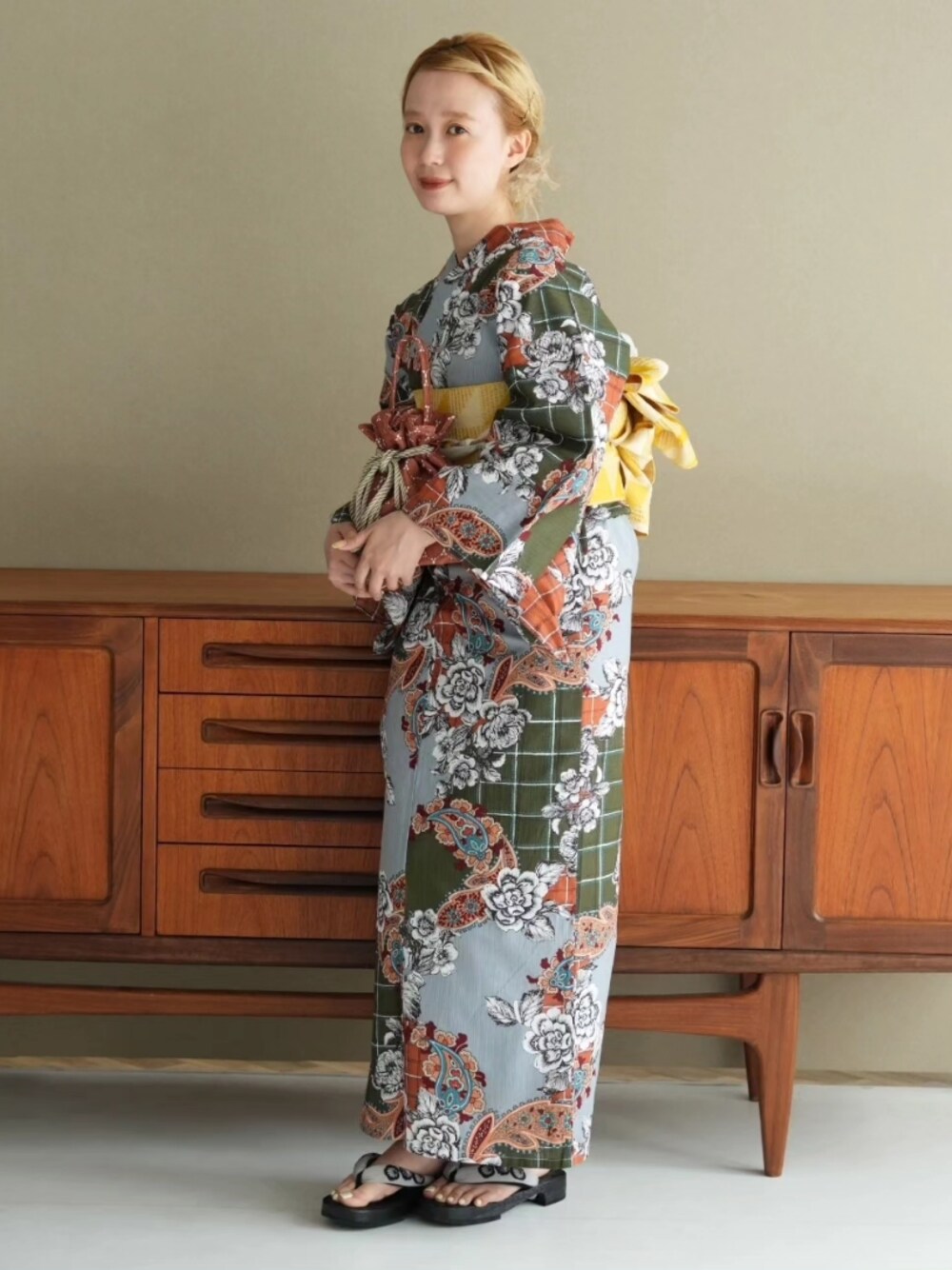 utataneスタッフ(EC事業部)の浴衣「選べる浴衣3点セット ニコアンティークオリジナル 国内染色 ニュアンスカラーレトロ*」を使ったコーディネート
