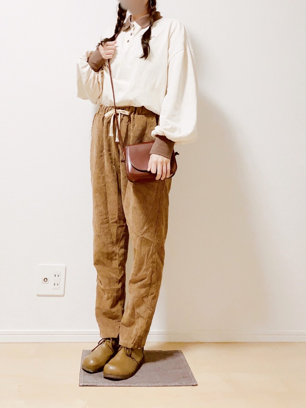 ブラウンコーデ ポロシャツとパンツ、バッグ、靴…色味を揃えずバランスを崩さないように着てみました🧸** 三つ編みをしてブラウンオンリーでも、春らしいコーデになったかな🌱🌱