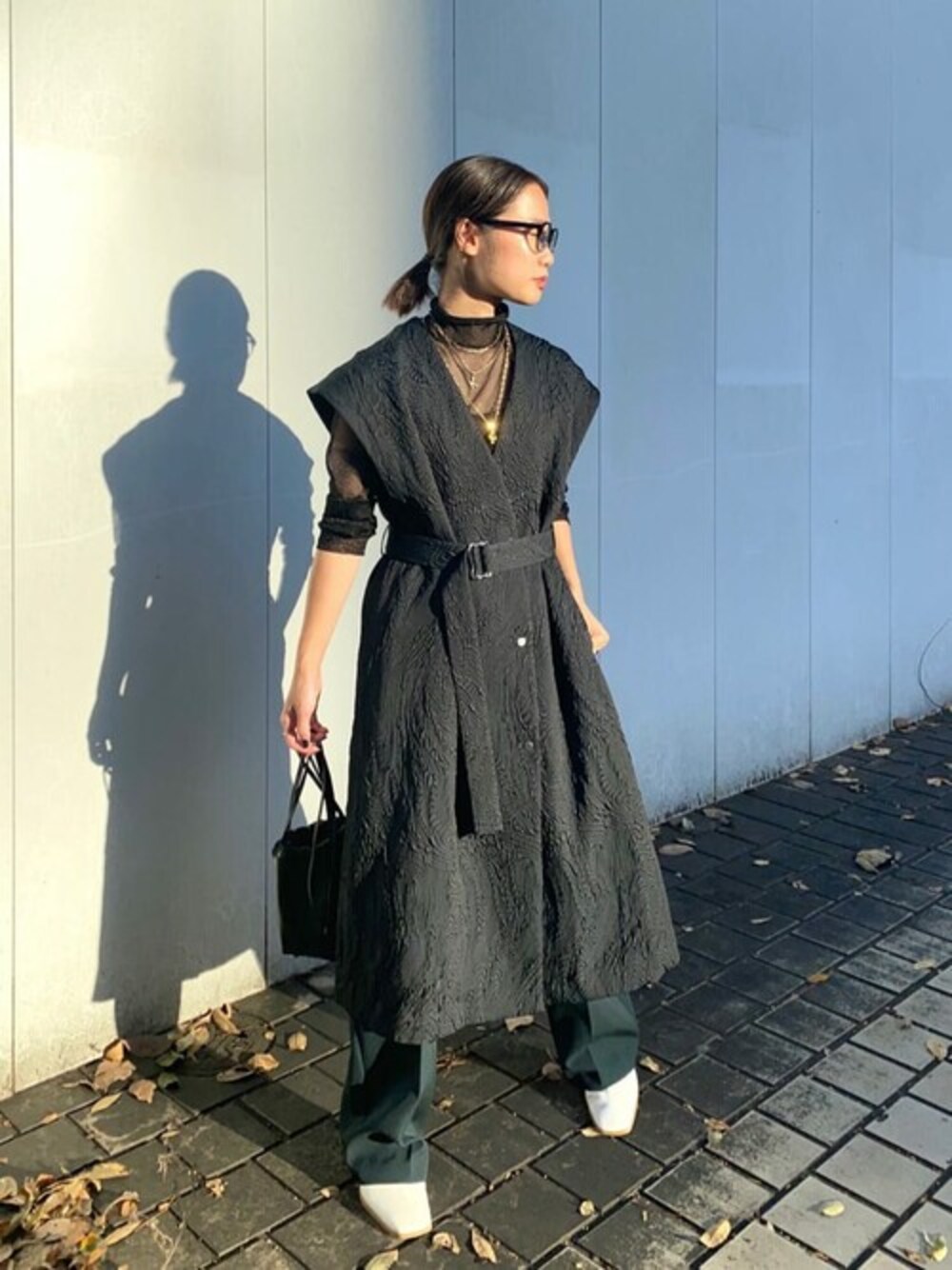 ガウンコートは袖が取り外しできます! 私は取り外してジレのようにきてみました! 1年着回しできるガウンコートはかなりおススメです!