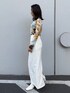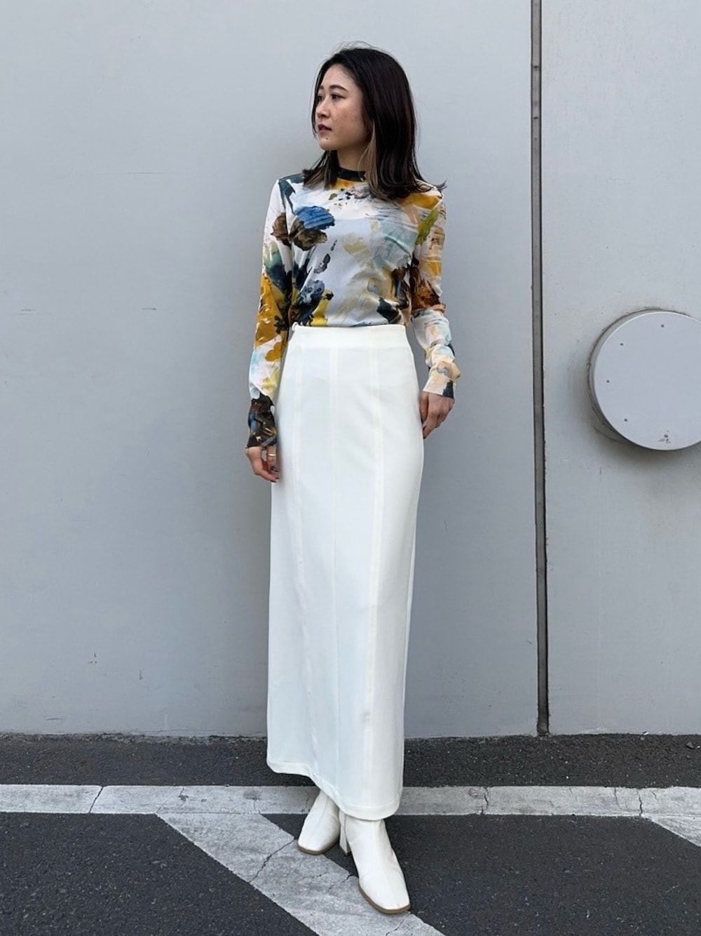 春らしいカラーリングのオリジナル柄トップスは着心地抜群で、レイヤードにもおすすめなので1年中使える優秀アイテムです〇明るい色のボトムスは一気にコーデが明るくなるので1つあると便利です!
