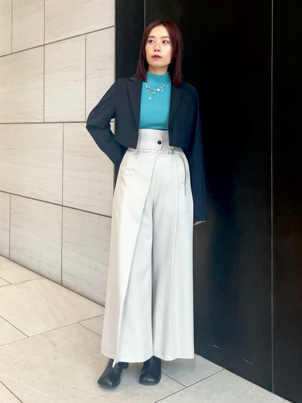 短丈のジャケットとハイウェストパンツできれいモードに〇 中に色物を入れると春らしさも出てオススメです