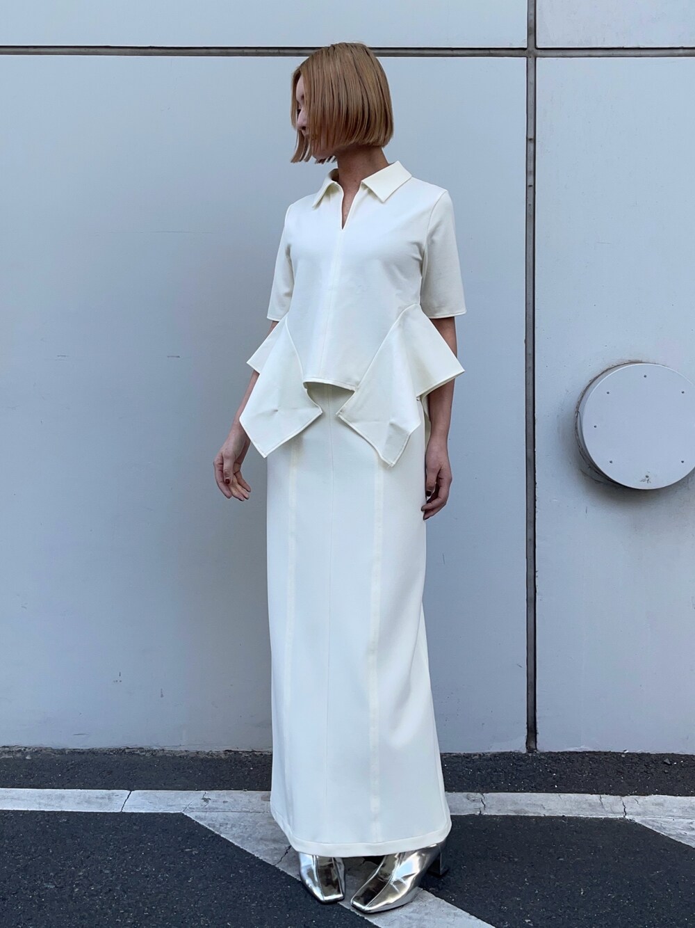 春のオールホワイトコーデは変形トップスで一癖!