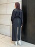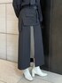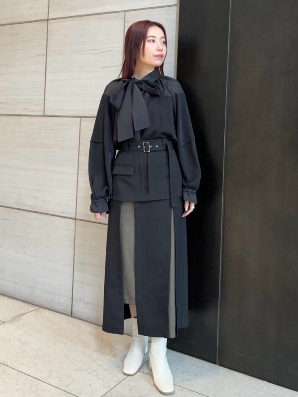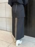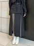 上下ブラックでも素材感やデザインが効いたスカートで合わせるのがオススメ〇