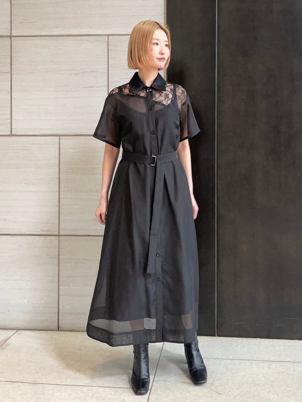UNITED TOKYO STAFF(UNITED TOKYO)のシャツワンピース「レースドッキングシャツワンピース|ウォッシャブル/防シワ/半袖/夏服」を使ったコーディネート
