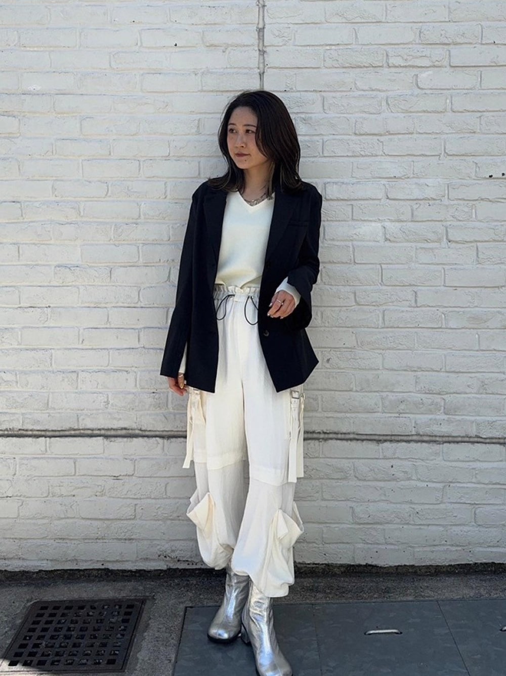 オーバーサイズのジャケットはカジュアルなアイテムとの相性も抜群です〇