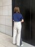 洗えるニットとサイドがシアーになっているパンツで大人カジュアルコーデです!
