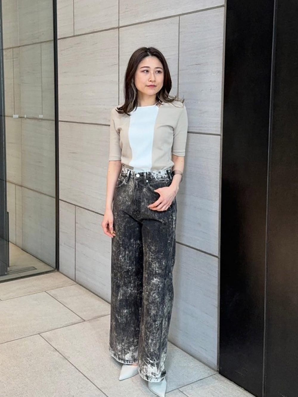 UNITED TOKYO STAFF(UNITED TOKYO)のTシャツ/カットソー「スクエアカットアウトリブカットソー|細見え/ウォッシャブル/半袖/春服」を使ったコーディネート