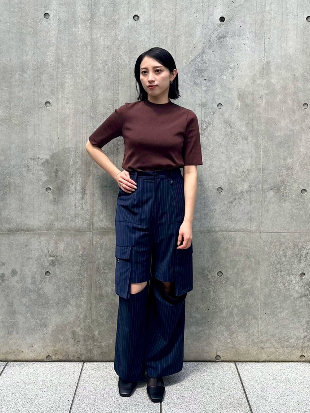 カーゴパンツは膝のボタンを開けて肌見せするのがオススメ◯