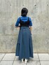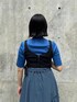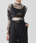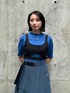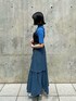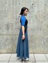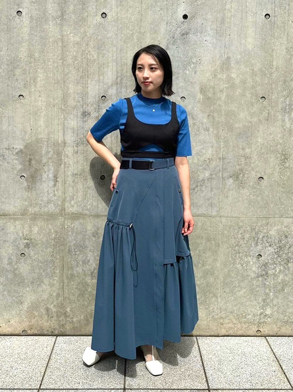 同系色コーデも黒のビスチェで締めるとまとまります!
