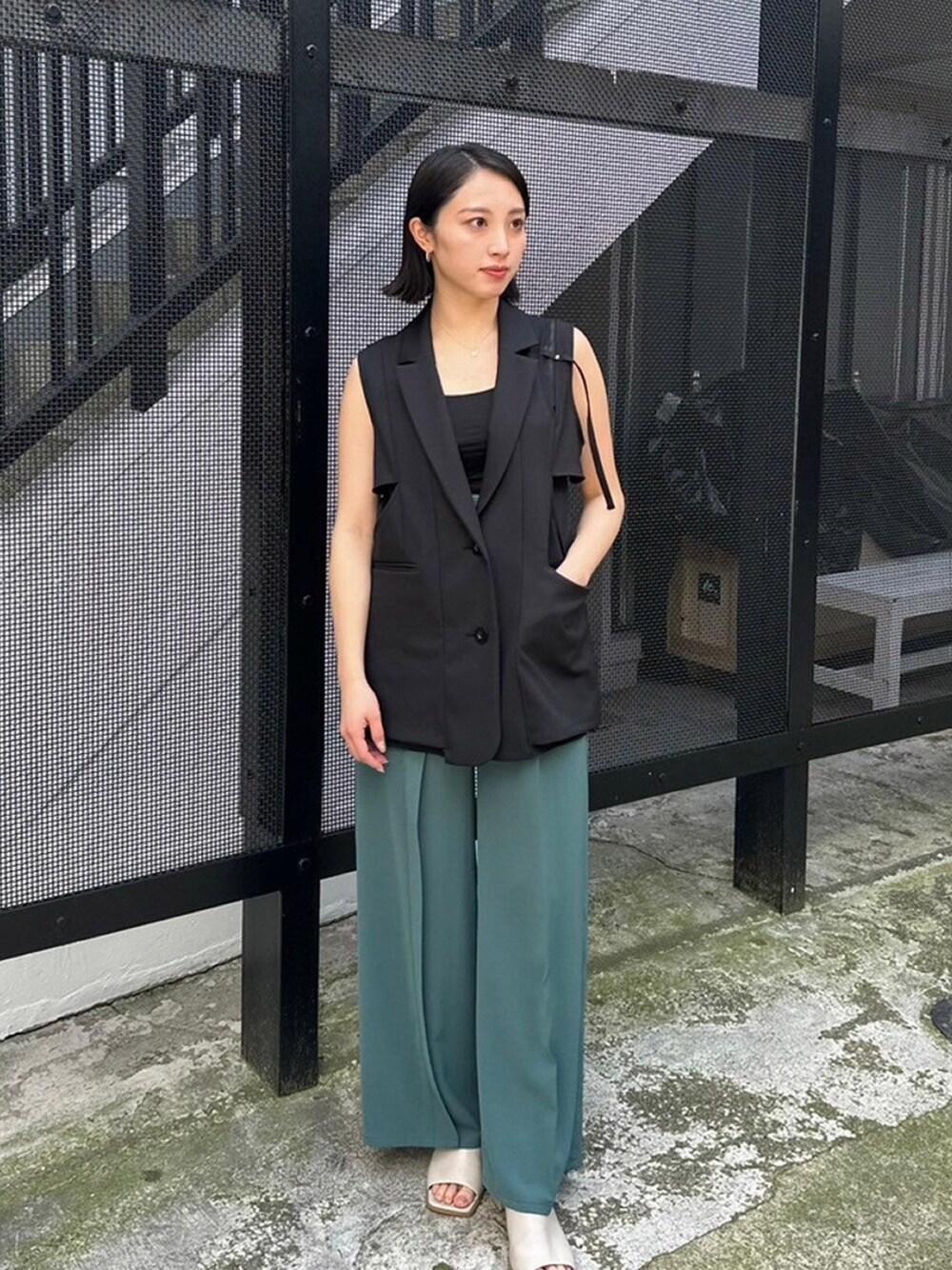 ベストはトップスとして着るのもモードに仕上がるのでオススメです◯