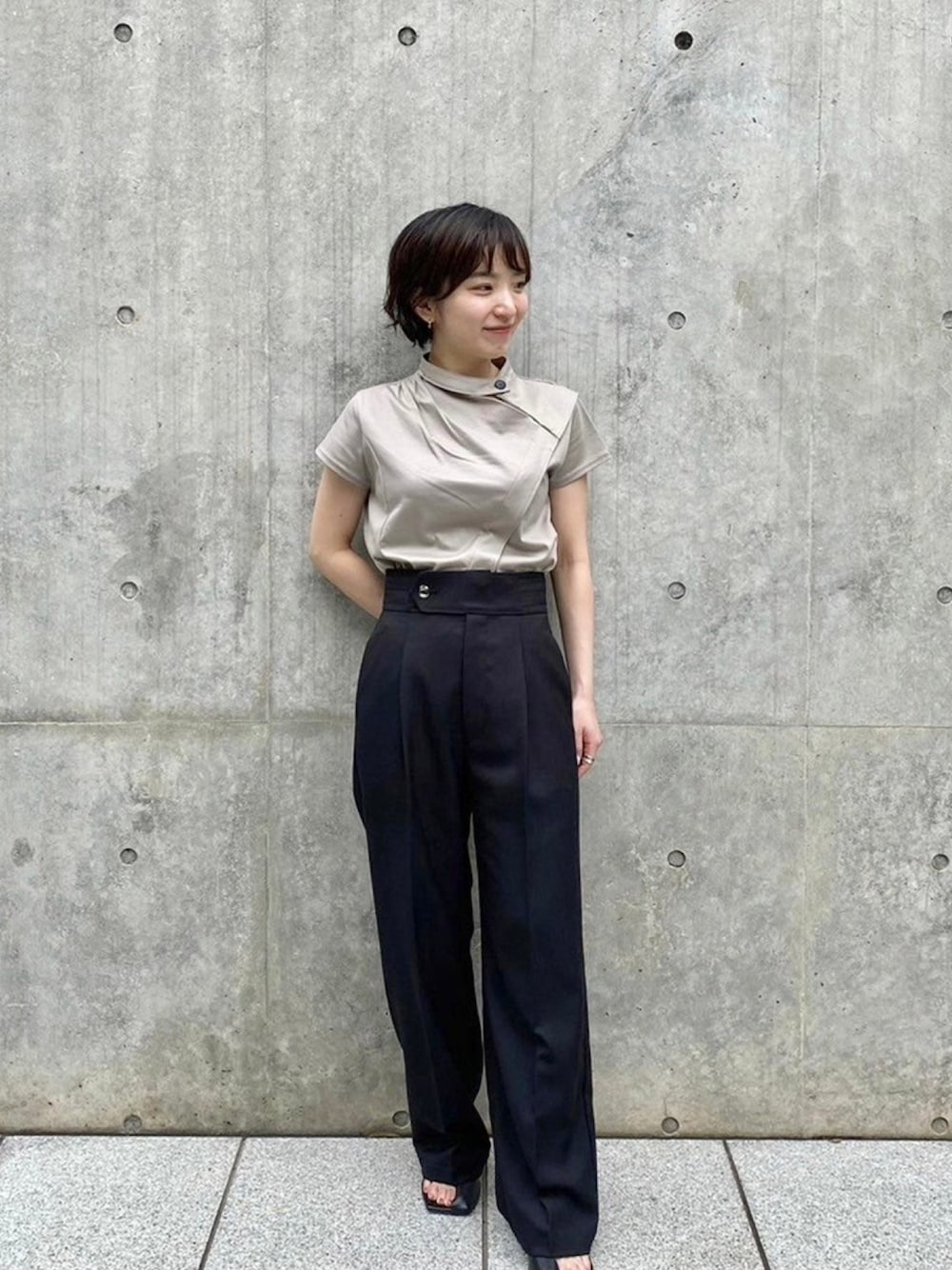 UNITED TOKYO STAFF(UNITED TOKYO)のTシャツ/カットソー「スラントシャーリングカットトップス|セットアップ/ウォッシャブル/オフィスカジュアル/半袖/夏服」を使ったコーディネート