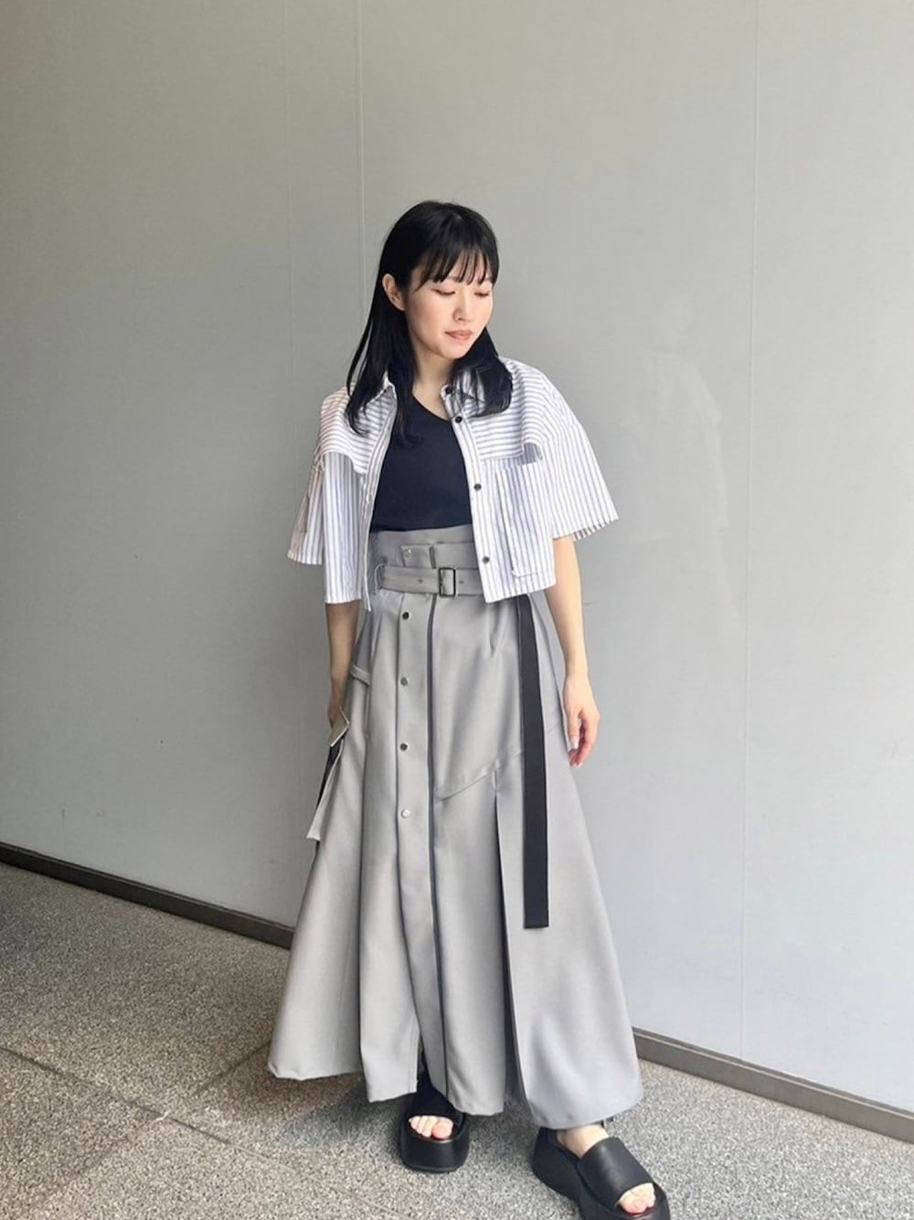 夏らしく明るいコーデでまとめました! シャツは羽織でも使えます。147cmでもバランスよく着られる丈感です!